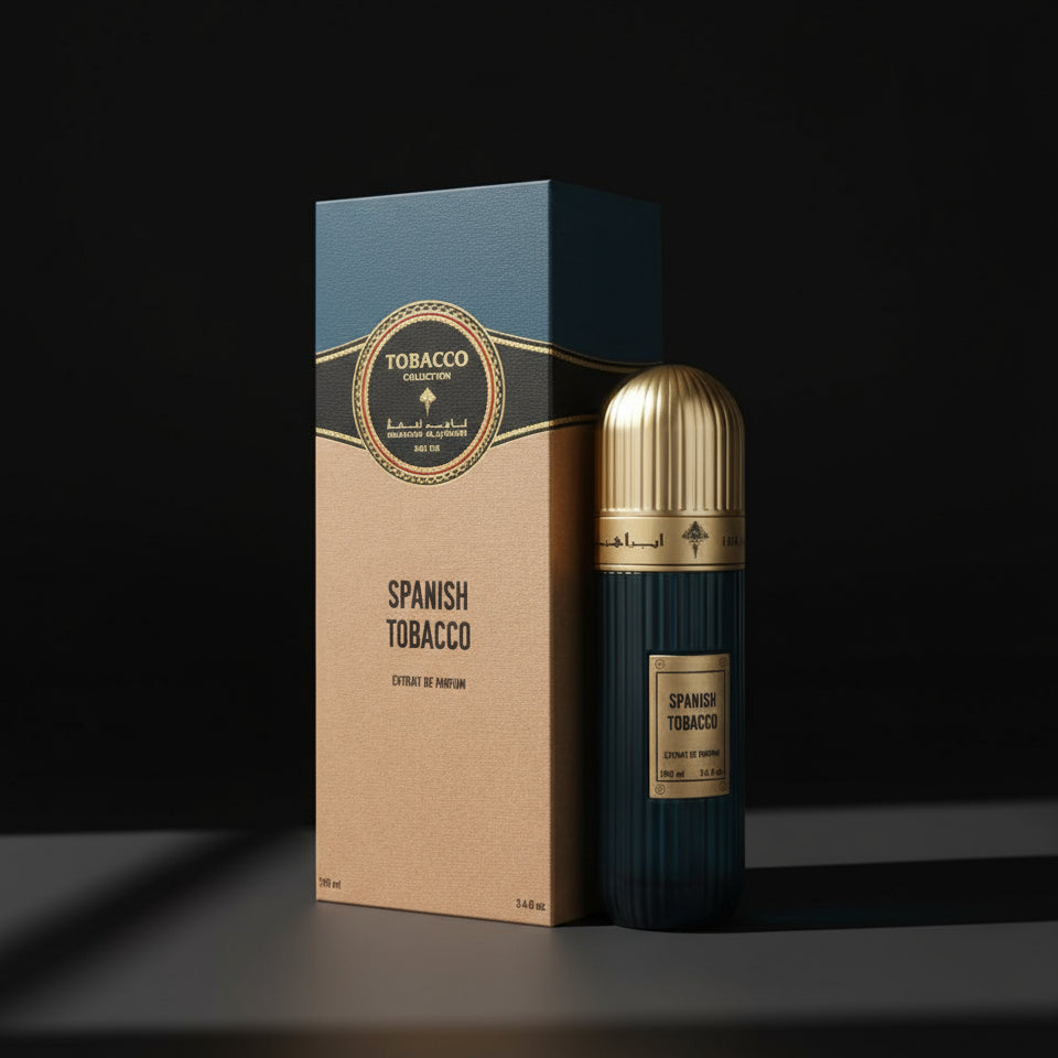 عطر اسبانش توباكو (التوباكو الأسباني) من مجموعة "إبراق" من إبراهيم القرشي هو عطر شرقي خشبي للجنسين يتميز بمزيج غريب يجمع بين الانتعاش المائي والعمق التابلي