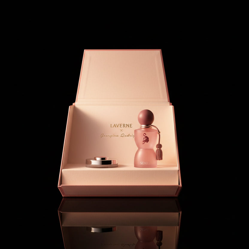 "شنطة سينس لافيرن" هي حقيبة يد قماشية أنيقة تأتي كجزء من طقم الهدايا الخاص بعطر "جورجينا سنس" من علامة لافيرن السعودية ،